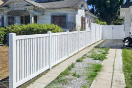 Vinyl fences are a popular choice in Ventura County for their resilience against coastal conditions and minimal upkeep requirements in the mild climate. Our UV-protected vinyl resists fading, cracking, and warping, ensuring it maintains its appearance year after year without the need for painting or staining, ideal for properties with constant sun and salt exposure. This makes it particularly suitable for Ventura County’s windy, salty environment.